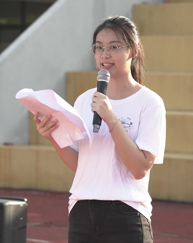 随后由优秀学生代表陈俞彤发言,首先她谈到了丰收节主题以及意义,接着她向大家介绍了深圳大学“药到病除”实践团在科技助农方面的事迹与成果,最后她鼓励同学们认真学习,主动作为,真正将从课堂和实验室学到的科学知识与乡村紧密连接,在新时代的田野上建功立业,为乡村振兴注入更多青春力量! 最后,在全体师生热烈的掌声中,此次升旗仪式圆满结束。 生命与海洋科学学院 2024年9月20日