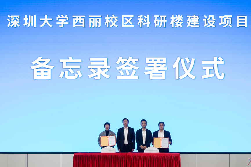 会上,深圳大学与深圳市建筑工务署签署关于深圳大学西丽校区科研楼建设项目移交的备忘录,随后进行项目钥匙的移交仪式。项目正式交接后,深圳大学、深圳市建筑工务署、设计单位、全咨单位、施工总承包单位相关负责人员合影留念。